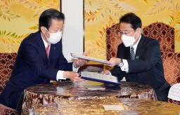 岸田文雄首相(自民党総裁)は1日、衆院選での与党による絶対安定多数確保を受け、公明党の山口那津男代表との与党党首会談で自公連立政権の合意文書に署名し、連立政権継続を確認した。政権与党として、新型コロナウイルス対応や格差是正を含む経済対策の裏付けとなる2021年度補正予算案の年内成立を急ぐ。党首会談に先立ち、自公両党幹事長が国会内で会談し、特別国会を10日に召集する方針を申し合わせた。首相指名選挙を経て第2次岸田内閣を発足させる。