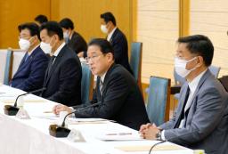 「全世代型社会保障構築会議」と「公的価格評価検討委員会」の初会合であいさつする岸田首相(右から2人目)。介護職や保育士らの賃金引き上げに向けた議論が始まった=9日午後、首相官邸