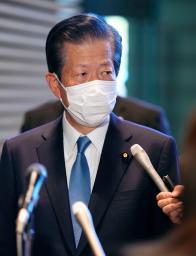 岸田首相との会談を終え、取材に応じる公明党の山口代表=10日午後、首相官邸