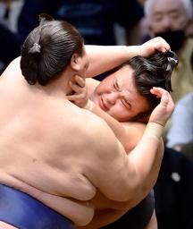 大関正代は妙義龍を突き落として5勝目。関脇御嶽海は隠岐の海を寄り切って7勝目を挙げ、関脇明生は宝富士を寄り倒して星を五分に戻した。