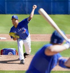 実戦形式の練習で登板したブルージェイズ・菊池=ダンイーデン(共同)